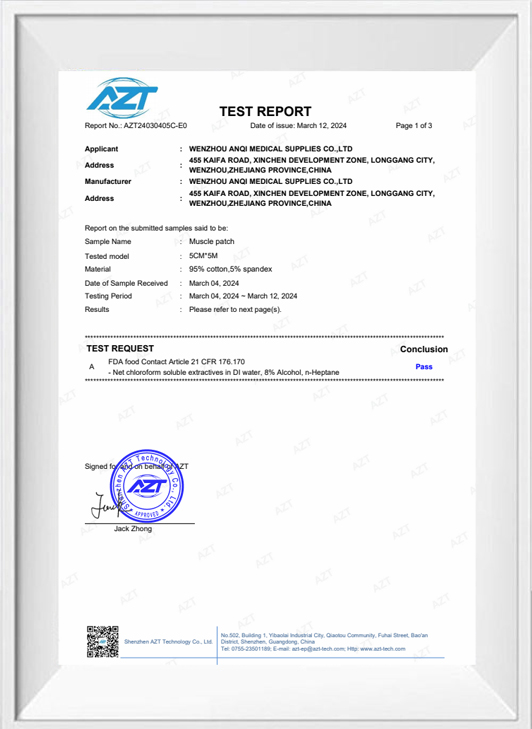 We can provide relevant product certifications and patents, including CE certifications for Kinesiology Tape, Boob Tape, Cohesive Bandage, Underwrap Tape, and more.